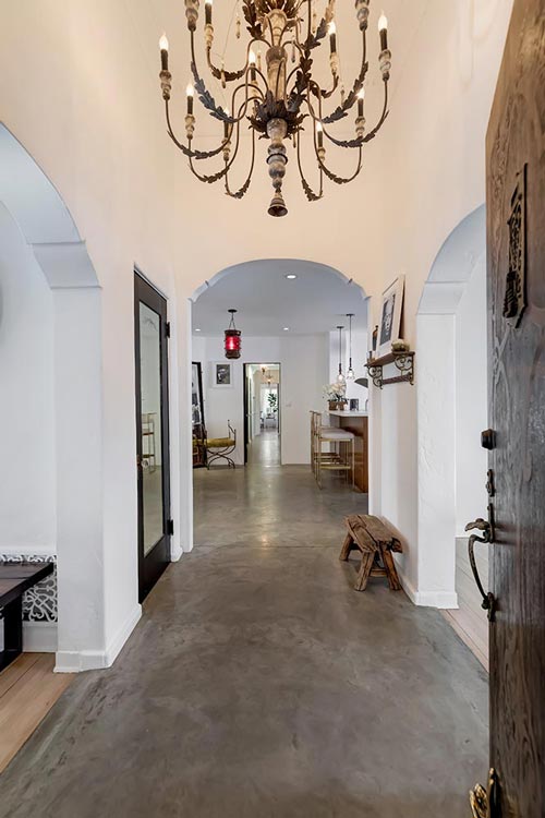 Spanish Colonial in a neighborhood of historic homes updated with modern luxury and casual sophistication. Gated yard and entry courtyard offer security and privacy. Outdoor living areas encourage indoor outdoor entertaining. Carved wooden front door and thick walls with plaster moldings are emblematic of the 1930s. Recently updated gourmet Kitchen has Thermador built-in refrigerator, professional range, dual sinks and wine fridge. Gallery entry leads to open Kitchen, spacious Den with French doors to the courtyard and formal Dining. Living Room has lofty beamed ceilings and a romantic leaded stained glass window looking out to a verdant garden. Main house has 3+2 with 2 en-suite baths plus powder. Primary has Moroccan style spa bath with heated marble floors, dual shower heads and luxurious soaking tub. Pristine hardwood floors with modernistic touches of concrete. Separate guest house has kitchenette and full bath. Located near The Grove and world class shops and restaurants.